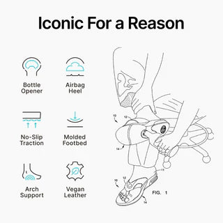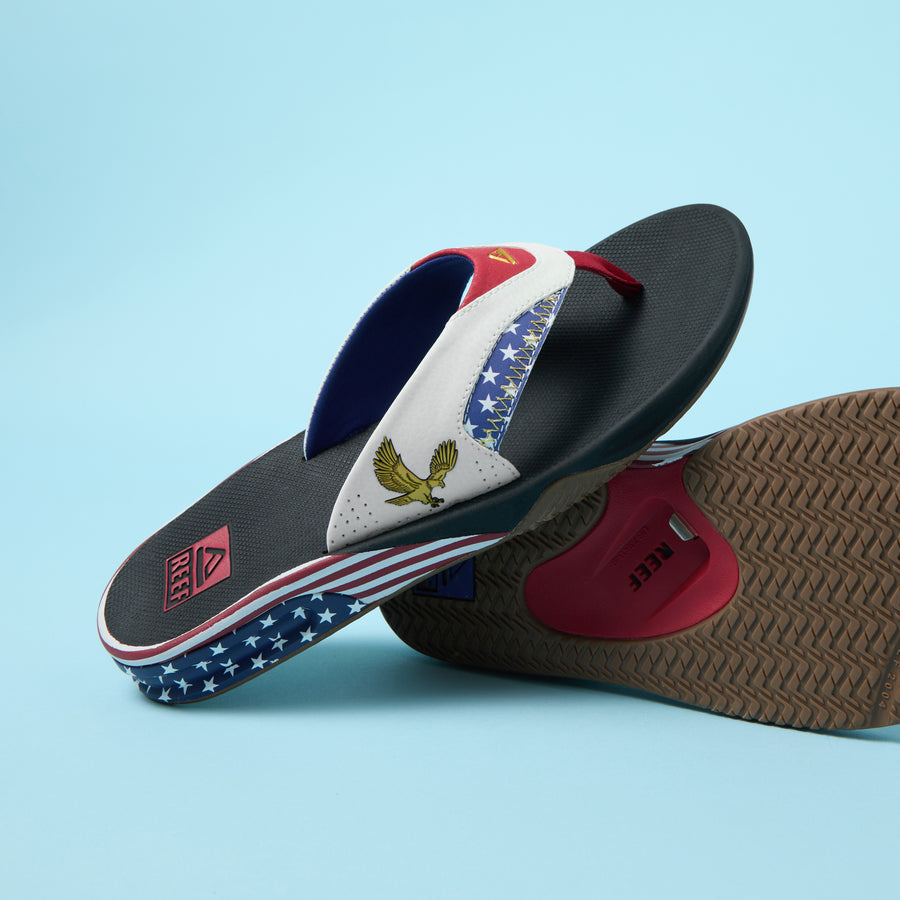 How you become a legend: work. sweat. repeat. Surfing great Mick Fanning inspired this hard-working flip flop. With a synthetic nubuck upper. padded liner. compression molded footbed with a heel airbag. plus herringbone rubber outsole with built-in bottle opener to celebrate success.