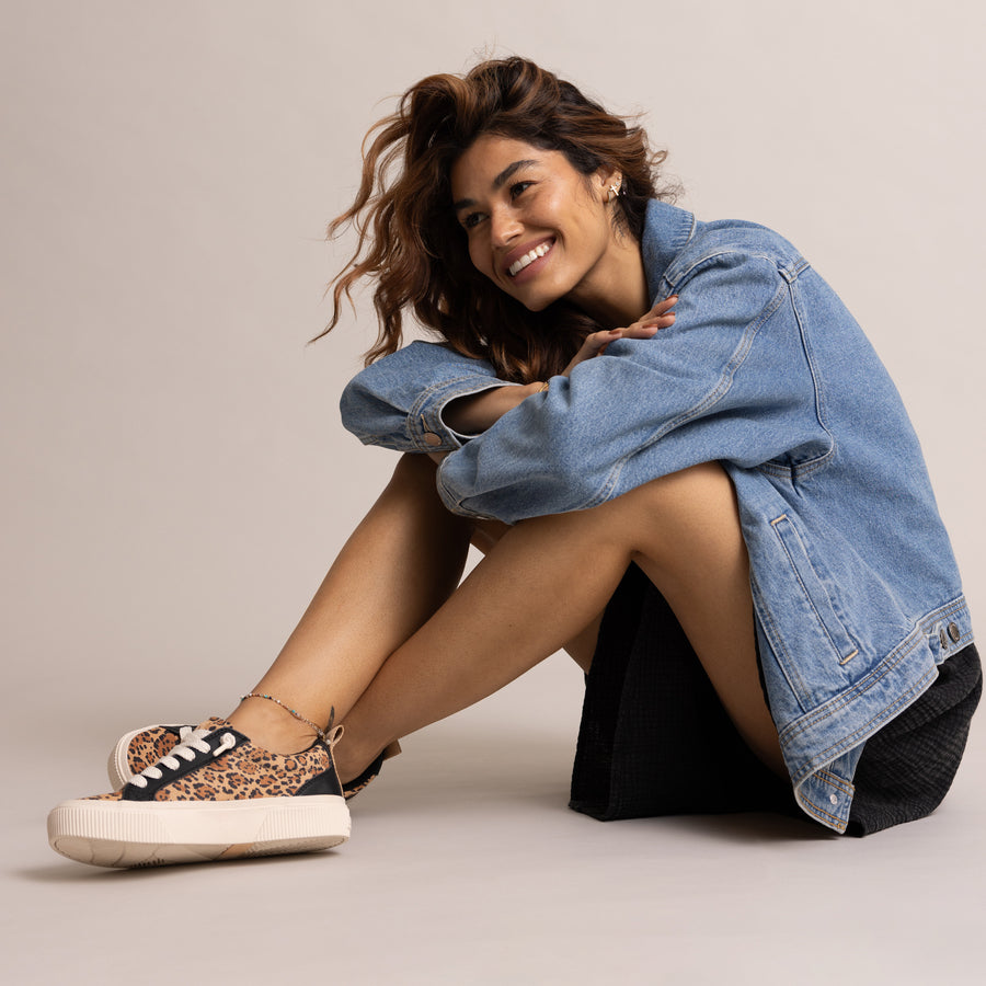 Ultra-flattering and easy to wear. the Lay Day Dawn is a premium sneaker with everyday functionality. We’ve created a unique hidden wedge insole that elongates your legs and offers superior comfort with a cork top layer. memory foam mid layer. and cushy EVA base. Finished with a rubber cupsole for added traction and durability.