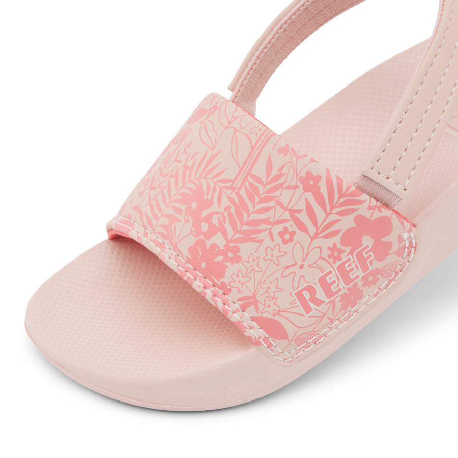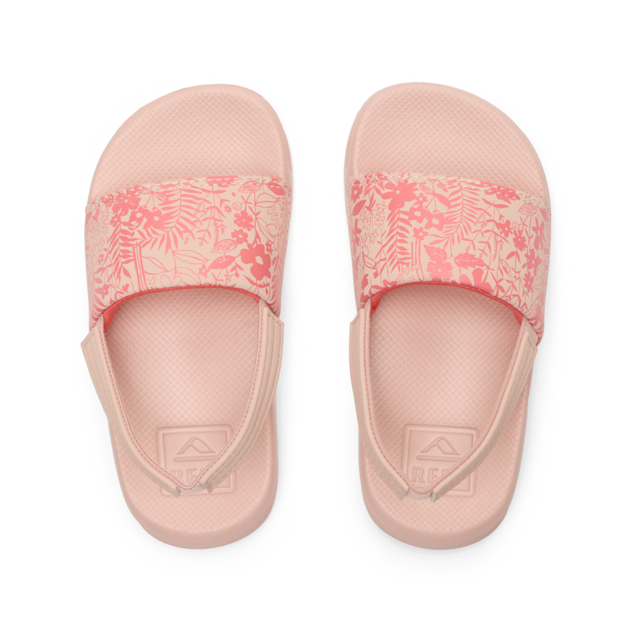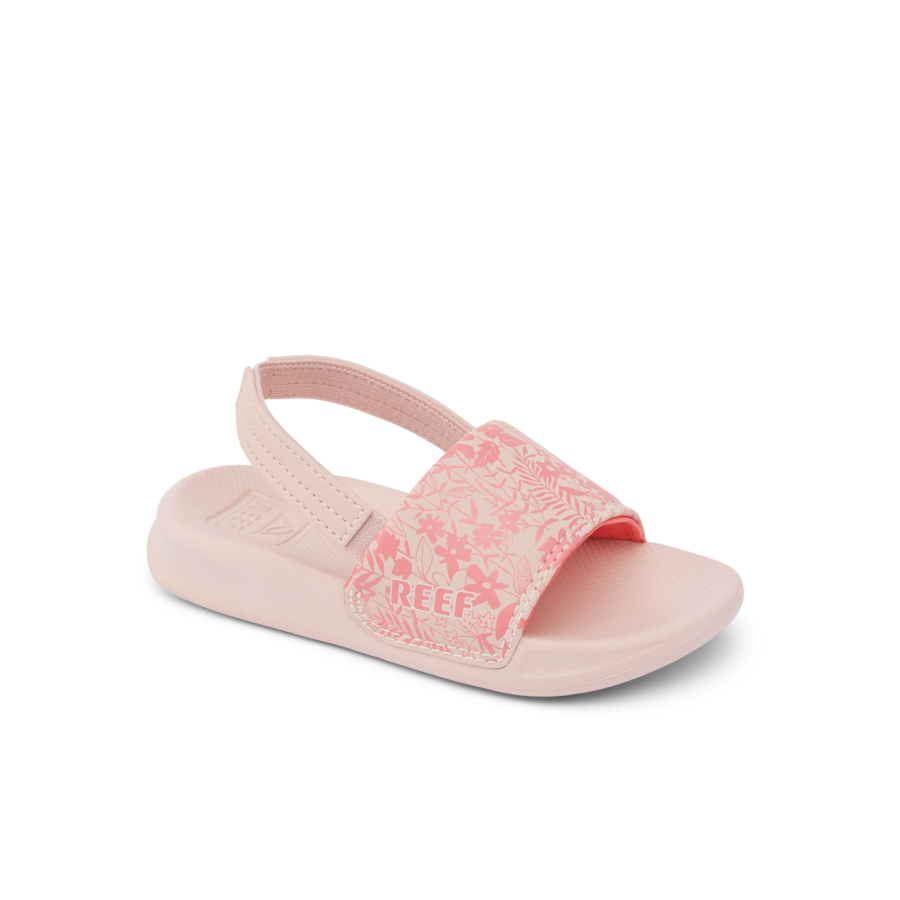 Great things happen when you mix water and fun. Water slides. Water balloons. And the Kids One Slide. our pintsized take on the classic Reef One Slide. Made with water friendly synthetic straps and a super soft padded jersey lining for comfort. These are awesome in the sand. by the bathtub and everywhere in between.