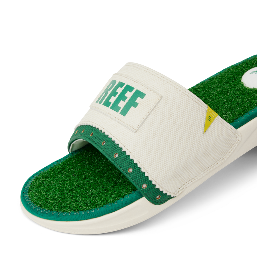 This is one decision you will not want to do over! The faux grass footbed. the golf ball heel pad. the built-in tee and the non-injection molded durable foam outsole — it’s a hole in one. Perfect for the locker room or grabbing that round of drinks after your round.