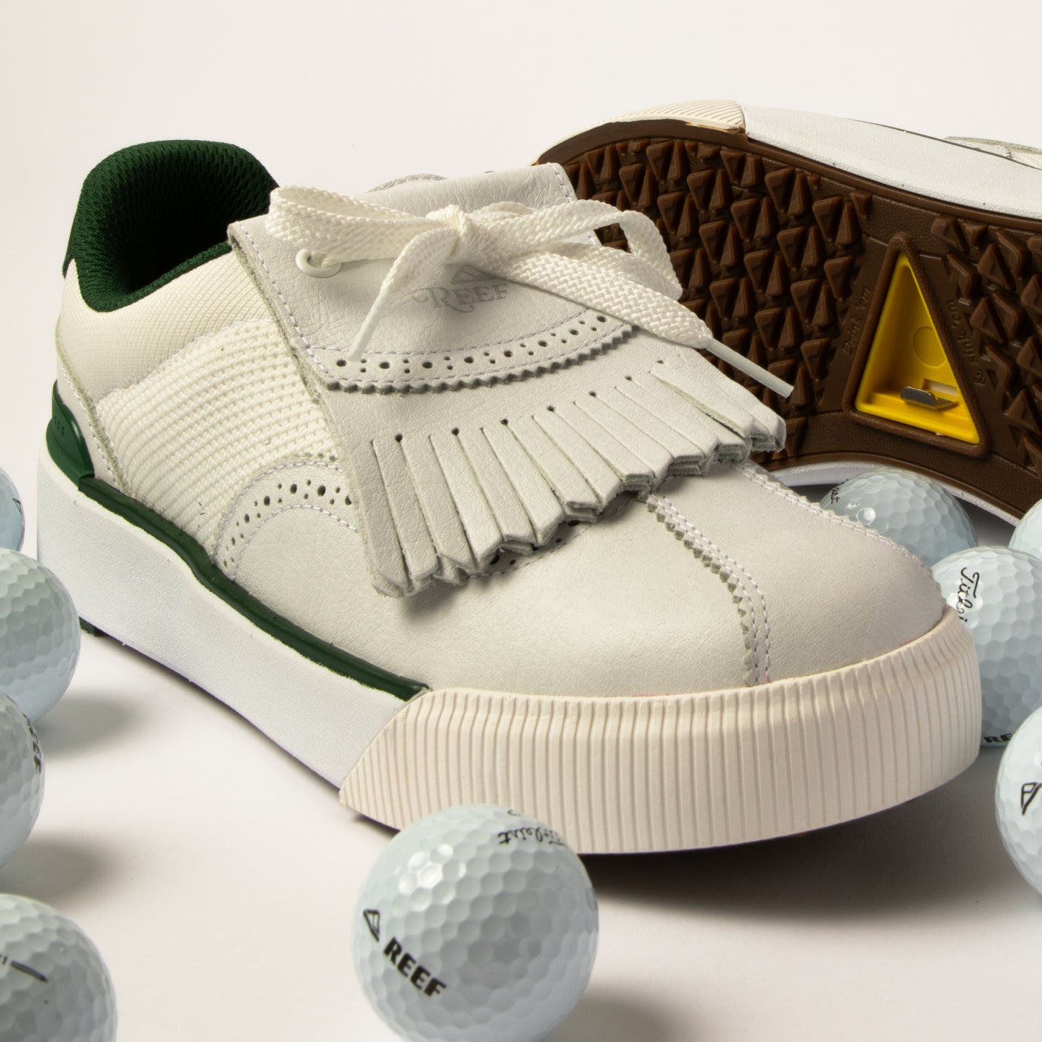 Because the clubhouse could use a little color and so could our golf kit. the Onshore Pebble joins the crew. An expressive golf shoe that doesn’t skimp on function. Yes. the Kiltie is removable. but once you see how it enhances your swing and keeps you out of the bunker. you’ll rock it for the entire round. The upper features rich textiles and sustainably-sourced leather??both treated with a water-resistant coating for potential damp conditions. Fine tuned and finished with a multi-directional soft spike tread. that’s safe to wear off the course. and our signature hidden bottle opener for your mid-game refreshments.