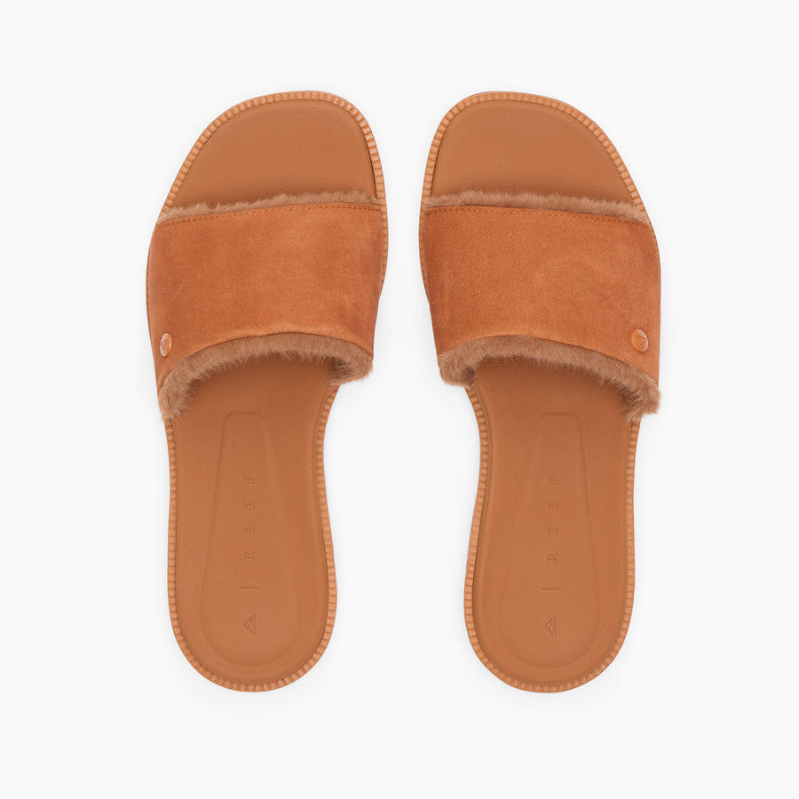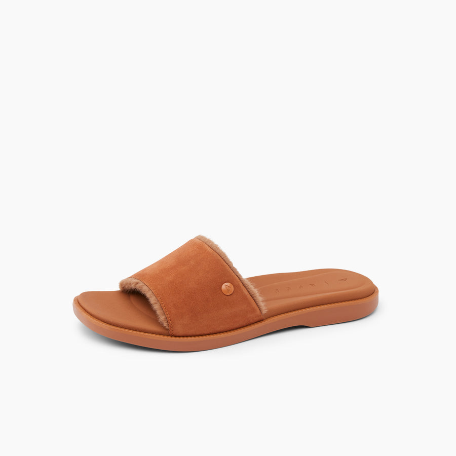 Our Sunny Arrianah Cozy feels like you’re wearing your casual kicks and looks like you’re ready to step out on the town. Featuring a super comfy footbed with cushion pods. and a cozy faux-shearling liner. these sleek-yet-durable slides pair beautifully with any warm weather outfit.