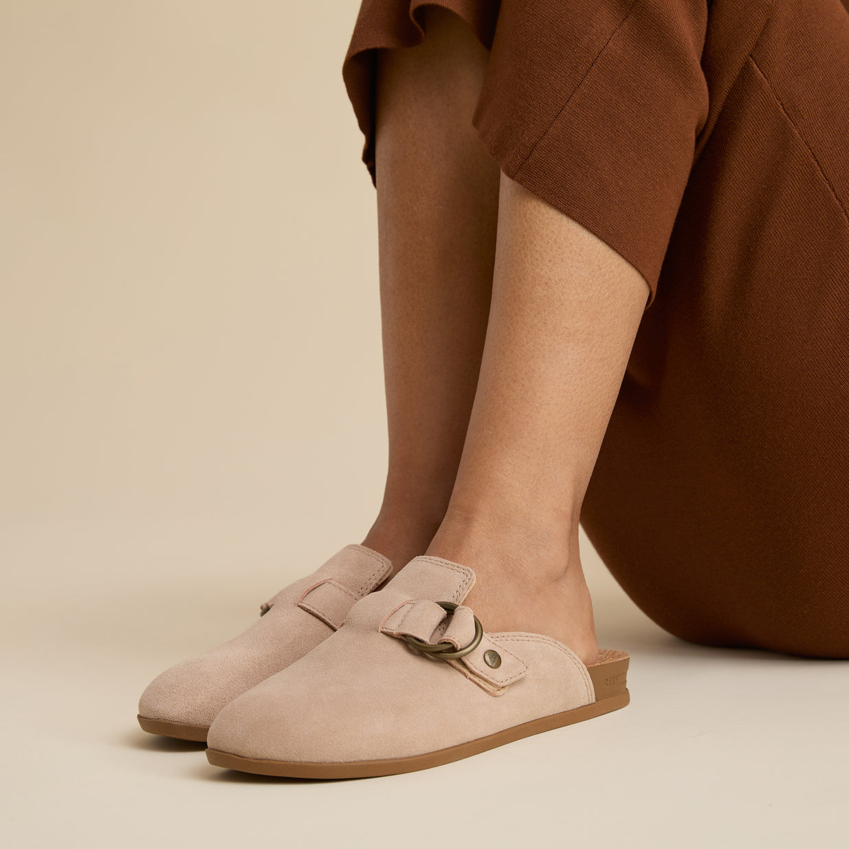 Unbelievably easy to slip on and head out. the Vista Serenity is a match made in heaven for lounge sets and lazy afternoons. The upper features premium. sustainably-sourced suede and a fixed buckle detail. Underfoot you’ll find a natural cork top sheet and our supportive molded midsole that gives rebounding comfort. from doggie strolls to Sunday shopping trips.